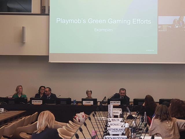 In May 2023, three representatives of the GREAT project were invited to present the GREAT project as well as Playmob’s green gaming examples at an UN Steering Committee event targeting Education for Sustainable Development, organised by UNECE (United Nations Economic Commission for Europe):