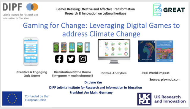 The session included a number of initiatives of empowering women and underrepresented groups to take on science activities and careers to advance the SDGs. Jane also shared the GREAT project findings in this session with a talk "Gaming for Change: Leveraging digital games to address climate change", based on the GREAT project methodology and first case study findings!